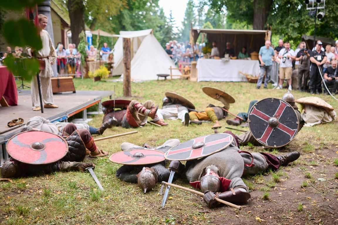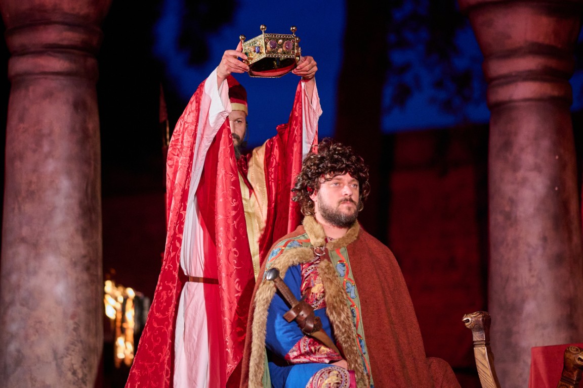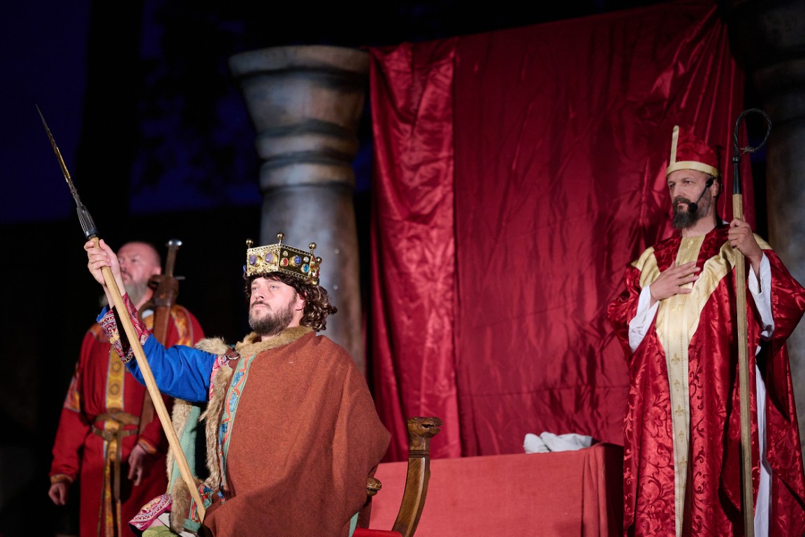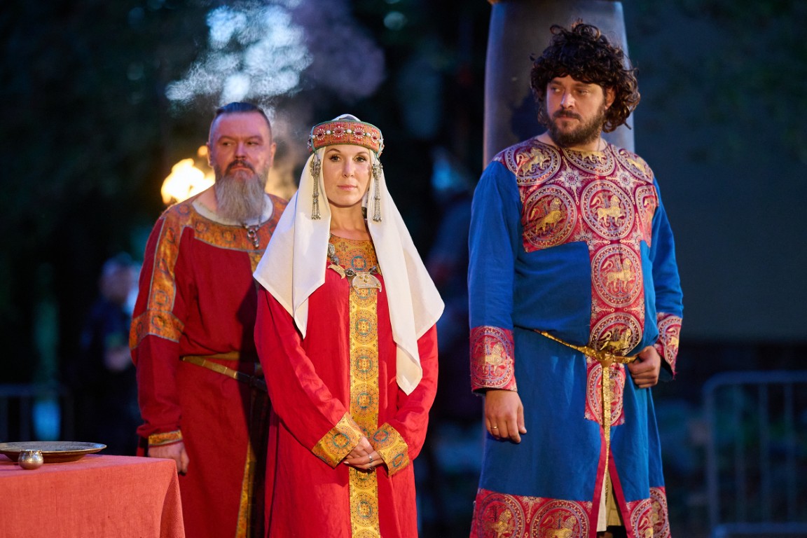 Choć od popołudnia plac wokół ruin klasztoru augustianów tętnił życiem, to największą atrakcją była inscenizacja historyczna, podczas której Bolesław Chrobry został koronowany na pierwszego króla Polski. Ten doniosły moment, którego jubileusz obchodzony jest w tym roku w całej Polsce, zyskał niepowtarzalny wymiar za sprawą scenografii, średniowiecznych strojów, precyzyjnie przygotowanych akcesoriów i muzyki, skomponowanej specjalnie na tę okazję przez Piotra Brodę. Niesamowitą inscenizację, uzupełnioną muzyką i światłem, stworzył Igor Górewicz, który wraz z odtwórcami historycznymi z Drużyny Grodu Trzygłowa przedstawił bieg życia Bolesława Chrobrego od narodzin, przez największe sukcesy na polach bitew, aż po koronację na pierwszego króla Państwa Piastów. Drobiazgowo przygotowane przedstawienie wywarło ogromne wrażenie na widzach nie tylko ze względu na wierne oddanie realiów epoki i autentyczność rekwizytów, ale także dzięki poruszającej muzyce i pełnej szczegółów narracji, które, połączone w spójną całość, utkały wspaniałą historię o wielkości rodu piastowskiego.