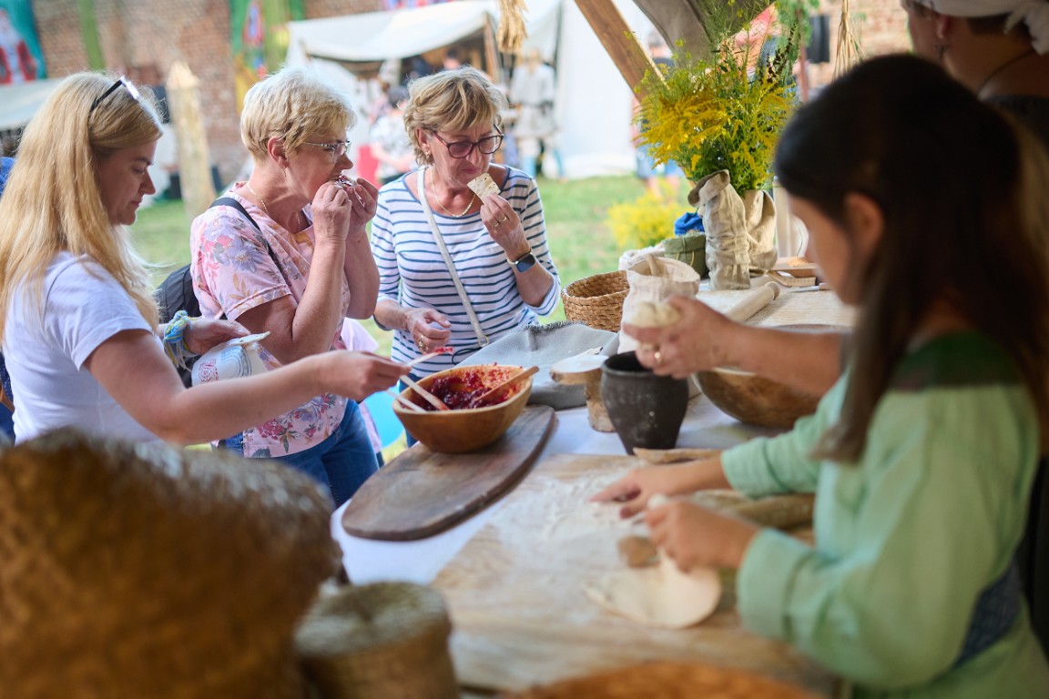 Przy specjalnie przygotowanych stanowiskach na przybyłych czekali animatorzy, którzy z pasją opowiadali o swoim rzemiośle, przekazując odwiedzającym mnóstwo zaskakujących ciekawostek, a jednocześnie proponując samodzielne wykonywanie dawnych, drobnych prac. Można było między innymi tworzyć ziołowe mikstury, zaplatać kwietne wianki i motanki czy poznać podstawy tkania na krośnie. Dzieciom zdecydowanie przypadły do gustu średniowieczne zabawy plebejskie, które przeniosły ich czasie, pozwalając doświadczyć, jak dawniej bawili się ich rówieśnicy.