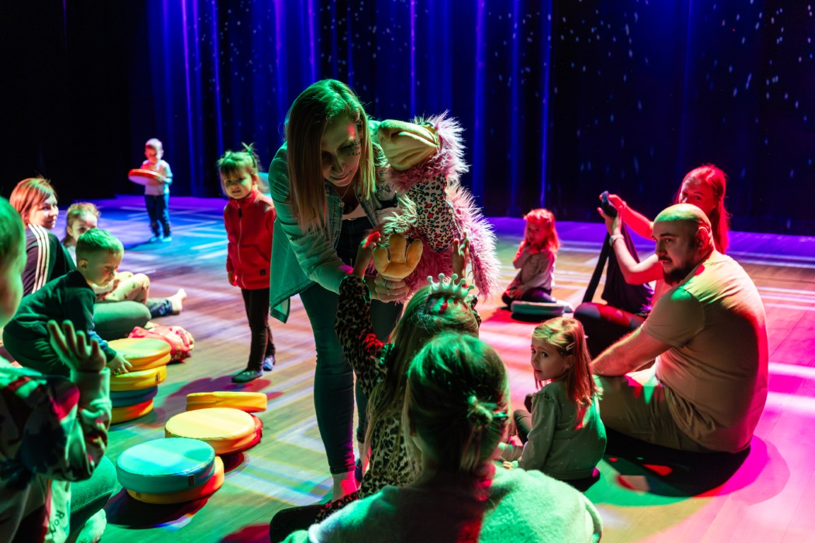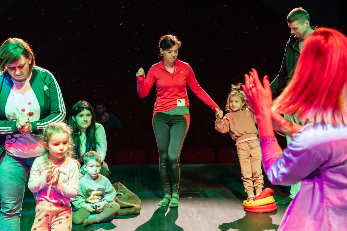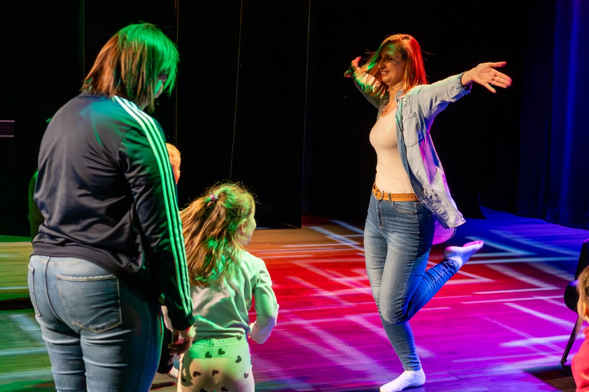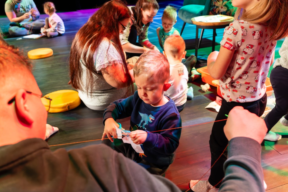 Z kolei dobrych sposobów na radzenie sobie ze smutkiem dostarczyła nam historia o małym Kaziku – przedszkolaku, którego smutek dopada wtedy, gdy wyjście na lody, na które czekał od samego rana, okazuje się niemożliwe, bo jego ulubiona kawiarnia jest zamknięta. Na szczęście z pomocą przychodzi mama, która dzieli się z synkiem swoim sposobem na uporanie się z emocjami. W opowiadaniu taką skuteczną metodą okazuje się piosenka, którą i my wspólnie z dziećmi i rodzicami wyśpiewaliśmy i wytańczyliśmy, żeby odgonić nasze smutki. Radosna melodia pokazała dzieciom, że smutek można przyjąć, nazwać, a potem rozproszyć go poprzez ruch, taniec i śpiew.