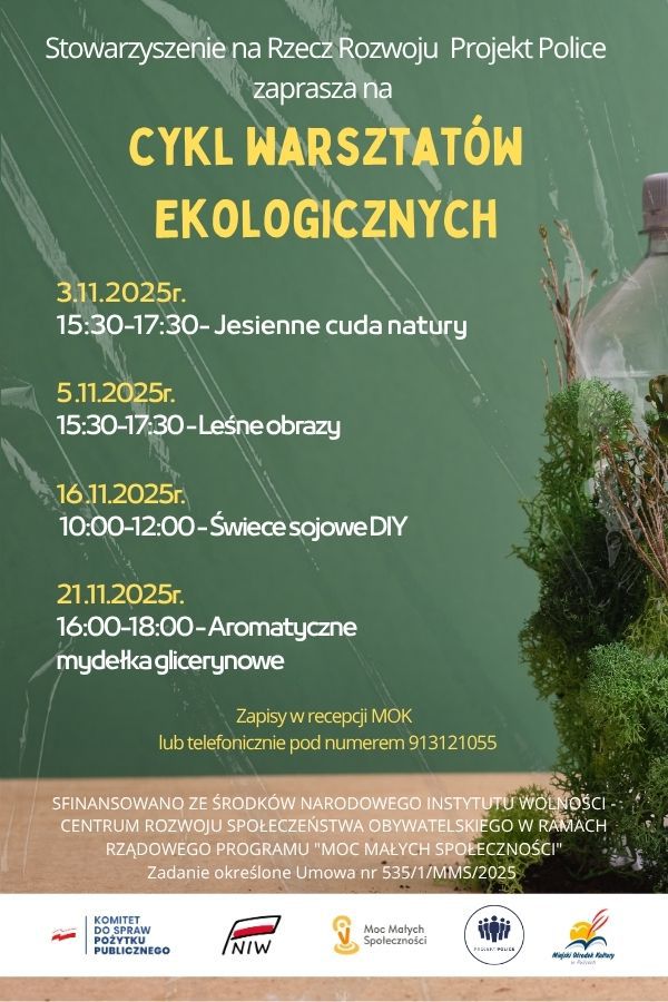 Przed nami cykl warsztatów promujących działania ekologiczne, wspierających ideę upcyklingu i dbałości o otaczający nas świat! Na spotkania zapraszamy dzieci, dzieci z rodzicami lub opiekunami, a nawet całe rodziny, by wspólnie tworzyły kosmetyki, ozdoby i dekoracje, które służą środowisku!