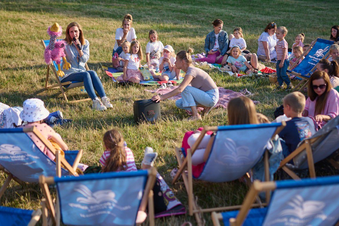 Wieczorne słońce, szum drzew, śpiew ptaków i… bajka na dobranoc – czy potrzeba czegoś więcej, by dobrze zakończyć dzień? Młodsze i starsze dzieci przekonały się, że bajka jest dobra na wszystko, a ich radosne uśmiechy sprawiły, że dzień stał się jeszcze bardziej słoneczny!