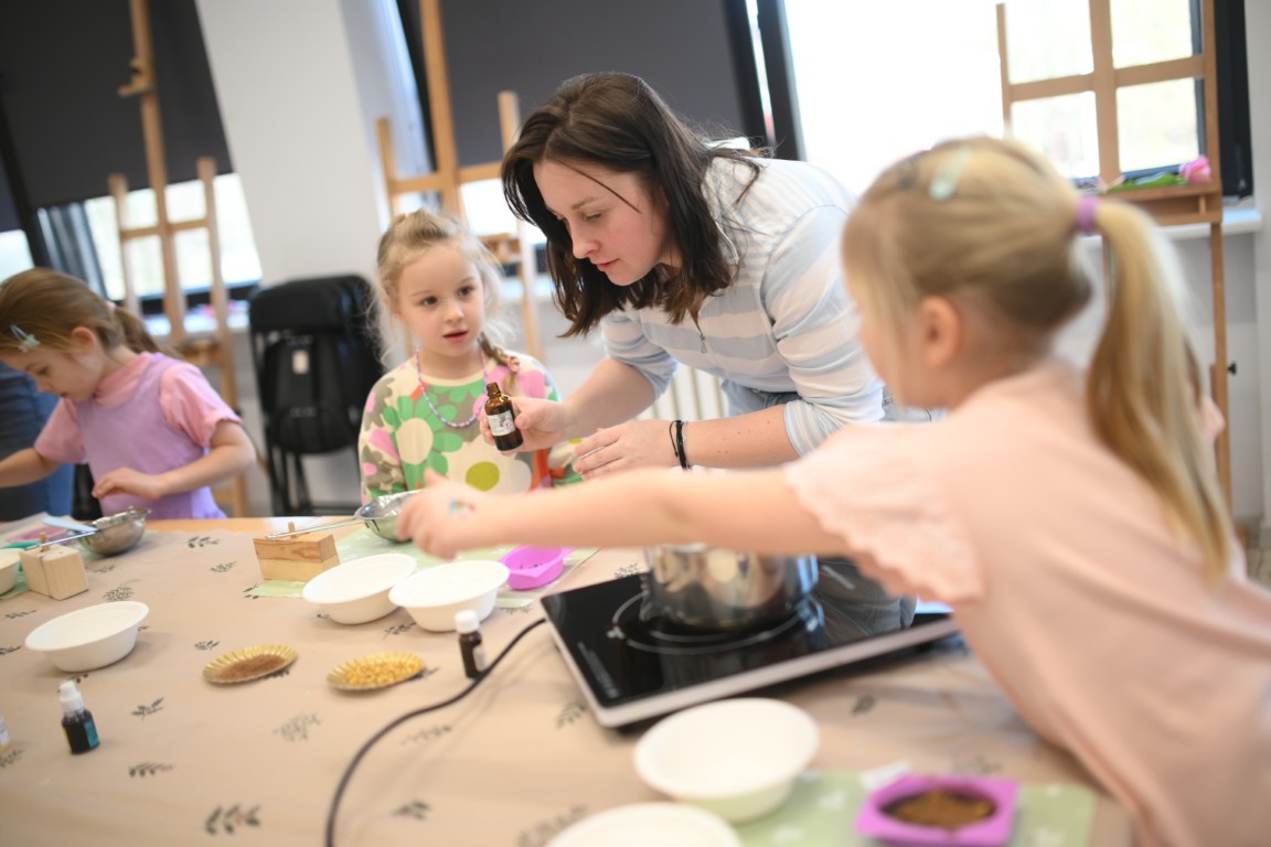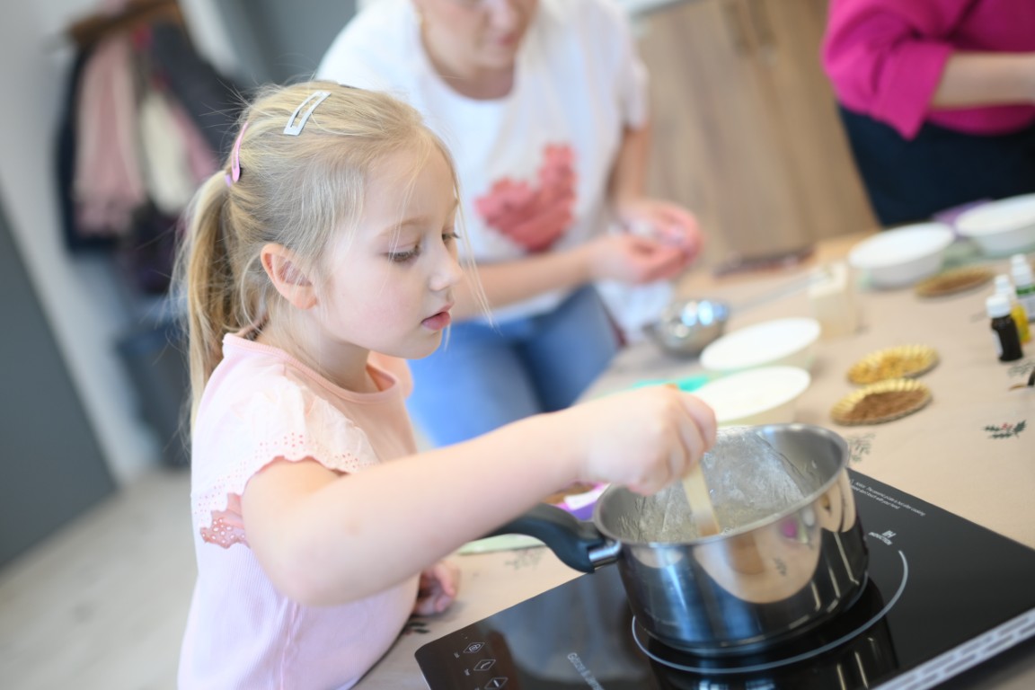 Co tym razem można było stworzyć w czasie naszych warsztatów? Dziewczynki wspólnie z mamami, ciociami czy babciami przygotowały aromatyczne mydełka – idealne do tego, by w domu wreszcie poczuć powiew wiosny, panie wykonały naturalne kosmetyki o zachwycającym różanym zapachu, nastolatki zrobiły dla siebie piękne ozdoby z żywicy, w której zatopione były akcenty przypominające o tym, że wiosna tuż-tuż, a miłośniczki prac szydełkowych wyczarowały urocze misie z kolorowej włóczki.