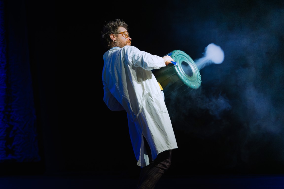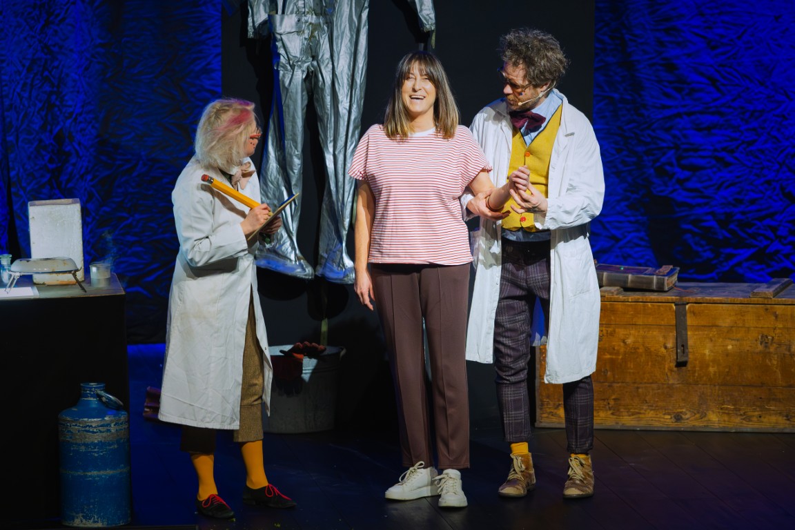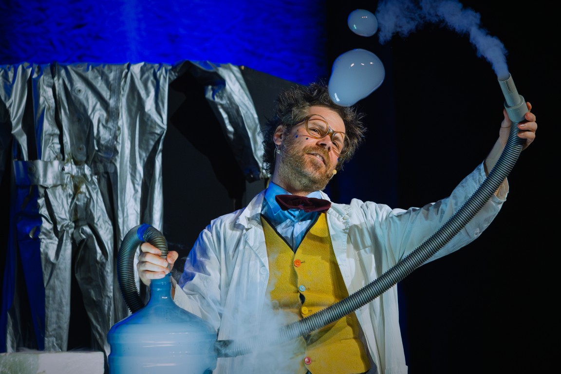Do świata szalonych eksperymentów widzów zaprosił zwariowany duet naukowców – docent Pigwa i jego asystentka Hegel, którzy z czeluści swojej pracowni badawczej wydobywali coraz to nowe wynalazki, niczym magicy wyjmujący królika z kapelusza. Ich niesamowite pomysły zachwycały publiczność, raz po raz wywołując salwy śmiechu. Bo czy kosmiczny hełmofon, wyrzutnia koszulek albo specjalne urządzenie do wytwarzania dymu nie nasuwają na myśl absolutnie zbędnych wynalazków, których jedynym celem wydaje się być rozśmieszenie widzów? Po takiej prezentacji eksperymenty z lodowatą wodą, przywiezioną prosto z odległej Syberii, okazały się prawdziwą gratką, która wywołała niemałą ekscytację i dreszczyk emocji! Na scenie było podpalanie, wybuchy, mrożenie, a to wszystko przy aktywnym udziale zgromadzonych na sali widowiskowej dzieci.