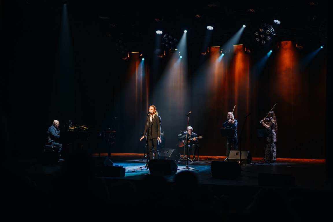 Tomaszów, Groszki i róże, Czerwonym blaskiem otoczona czy Pomarańcze i mandarynki swoją subtelnością i wyczuciem, odsłaniającym najróżniejsze oblicza miłości – tej stęsknionej, utraconej, nieodwzajemnionej – opowiadały o uczuciach słowami artystów wrażliwych, czułych i uważnych. Nieco lżejszy nastrój, pozwalający skupić się na wirtuozerii wykonań, doskonałej dykcji i dźwiękach wydobywających się z instrumentów wprowadzały utwory takie jak W dzikie wino zaplątani, Jaki śmieszny jesteś po oknem czy Kupcie szczeniaka. Zaś interpretacje wierszy Garbus i Konie Apokalipsy w wykonaniu Tadeusza Kwinty, współzałożyciela Piwnicy pod Baranami, wywoływały ciarki i poruszały do głębi. Mistrzowskie były również partie na skrzypce, które idealnie oddawały nastrój, budując atmosferę napięcia i nieuniknioności świata. Połączenie instrumentów, tworzących niebywałą harmonię dźwięków i głosów – tak różnych w swej barwie, a jednocześnie tak spójnych w przekazywaniu emocji – złożyło się na liryczną opowieść o człowieku i świecie, dającą przestrzeń do zadumy i zatrzymania się choćby na chwilę w świecie, w którym tak często zapomina się o tym, co naprawdę ważne.