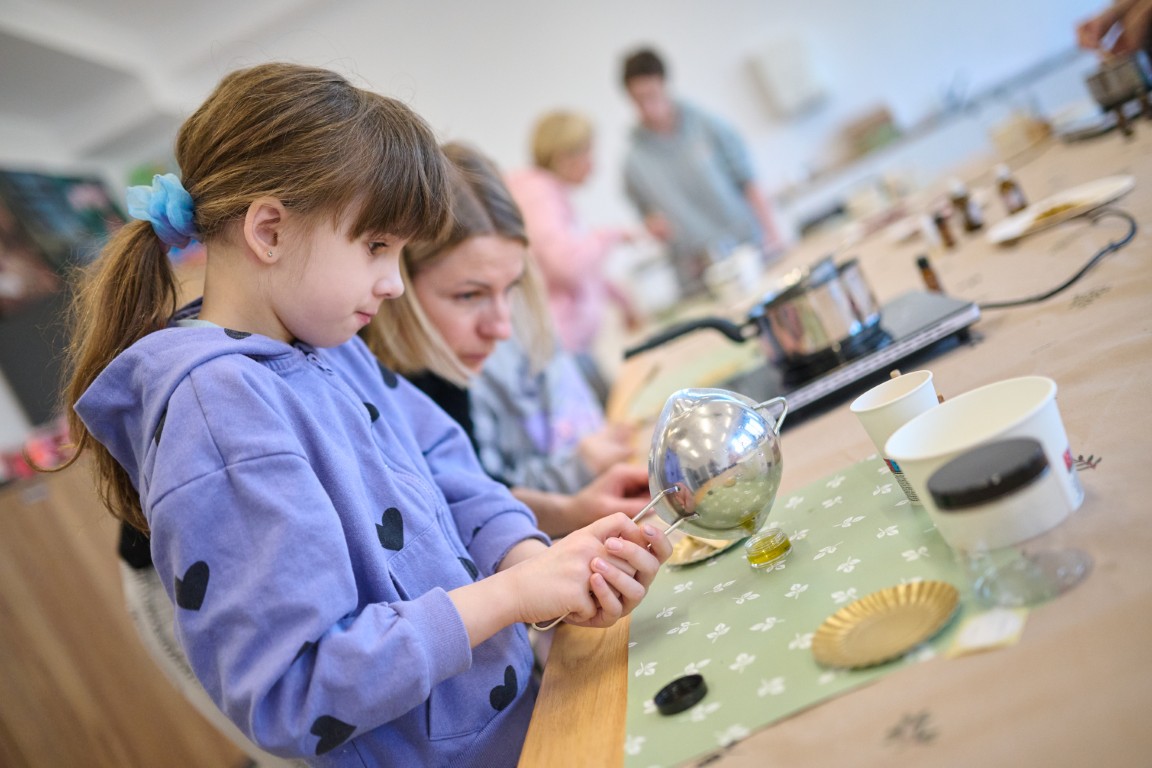 Wśród wiosennych propozycji nie zabrakło także warsztatów przygotowanych z myślą o dzieciach i ich rodzicach, które pozwoliły cieszyć się wspólnie spędzonym czasem i dzielić satysfakcją z wykonanej pracy. W czasie warsztatów kosmetycznych uczestnicy tworzyli naturalne balsamy do ust i aromatyczne sole do kąpieli, ucząc się i bawiąc jednocześnie. Dzieci wraz z dorosłymi eksperymentowały, mieszały i obserwowały, jak z prostych, ekologicznych składników powstają pachnące, gotowe produkty.