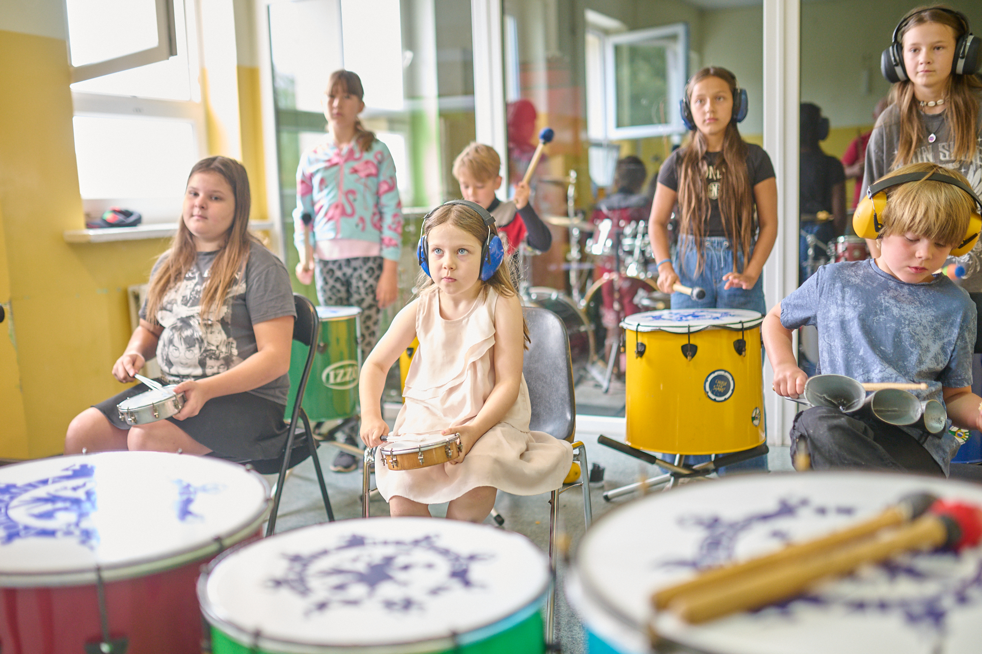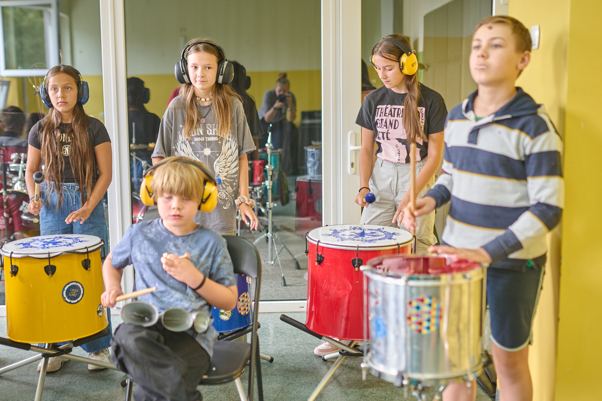Zajęcia gry na bębnach brazylijskich. Pełne energii rytmy prosto z Brazylii! Uczestnicy uczą się gry na bębnach, tworząc dynamiczne kompozycje i czerpiąc radość z muzyki.