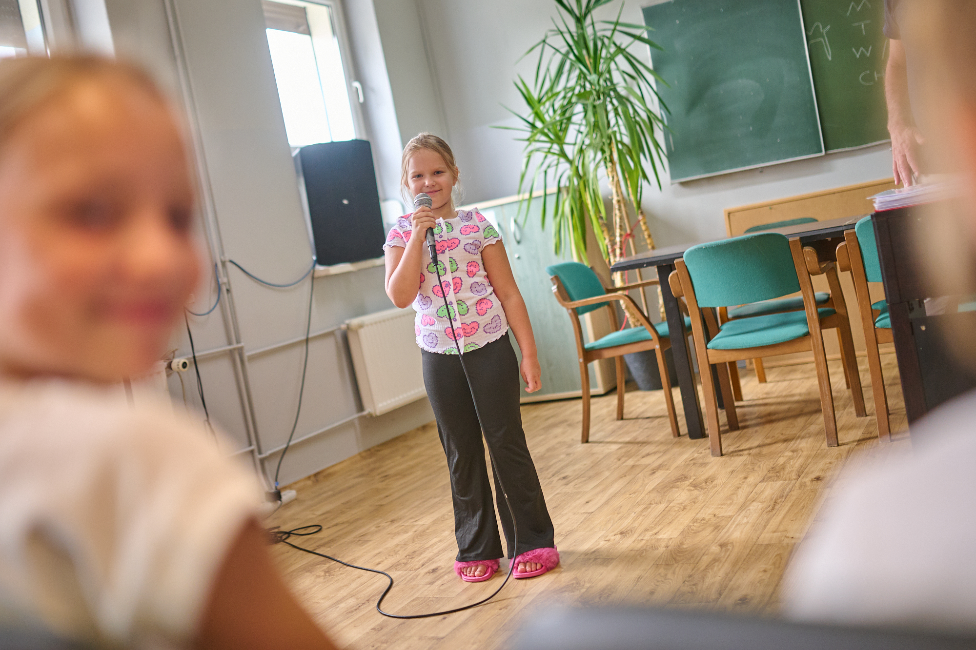 Zajęcia wokalne. Dzieci i młodzież rozwijają swoje talenty wokalne, ucząc się technik śpiewu oraz pracy nad własnym głosem. Wspólnie tworzymy małe chóry i solowe występy!