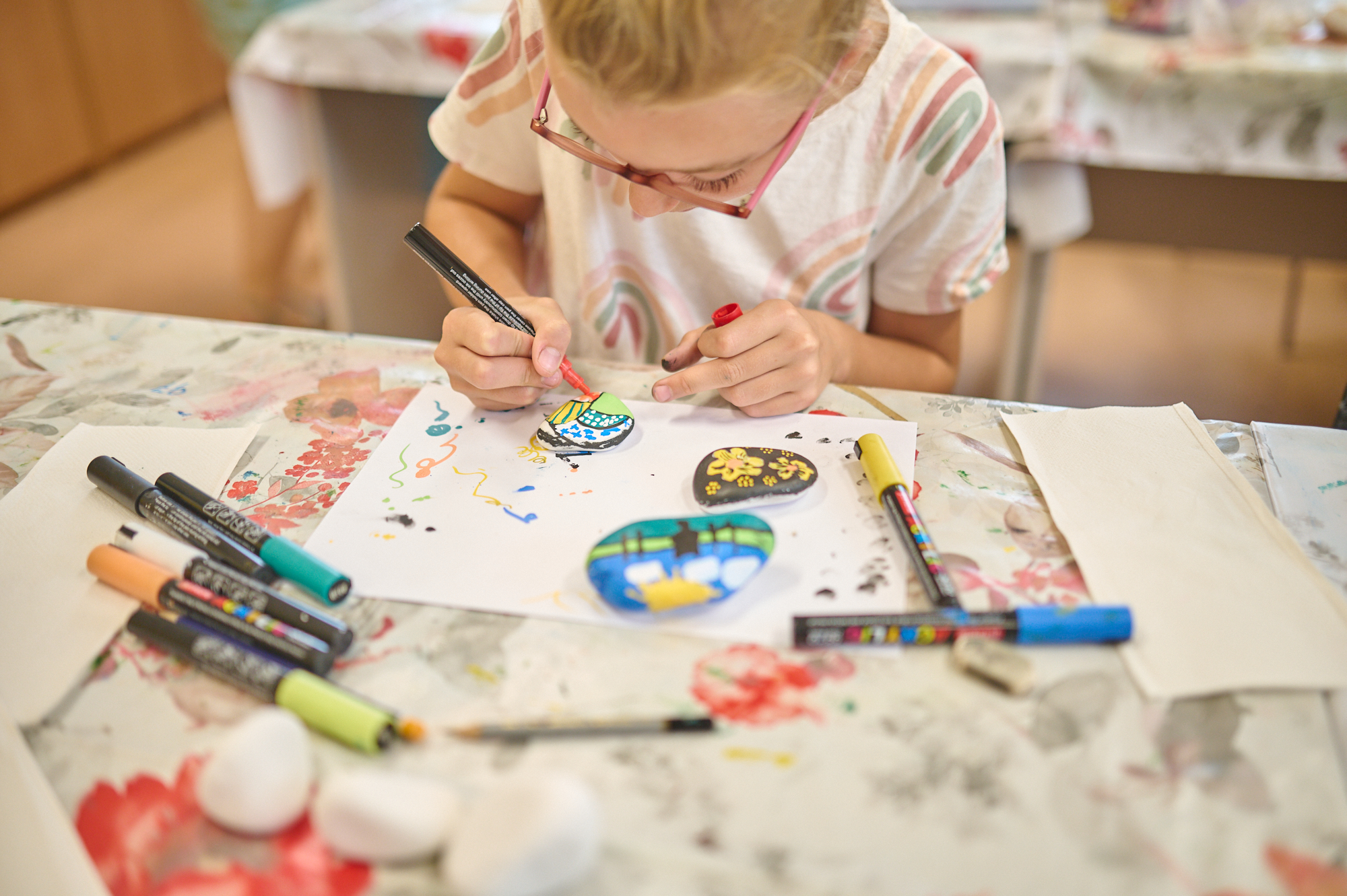 Malowanie kamieni. Kamienie zamieniają się w małe dzieła sztuki, dzięki wyobraźni i talentowi młodych artystów, którzy ozdabiają je pięknymi wzorami.