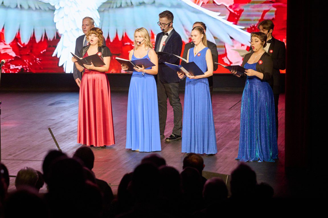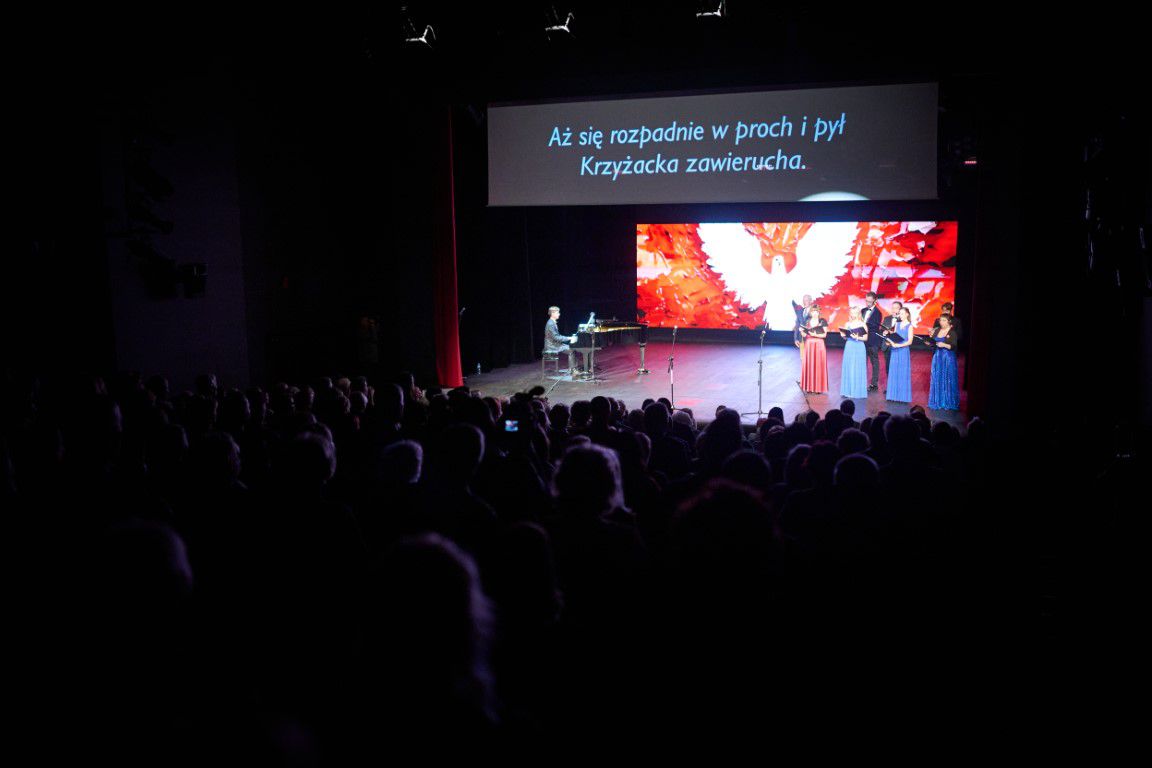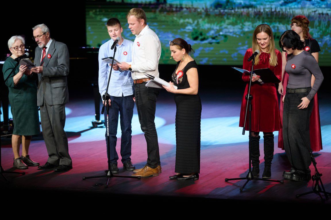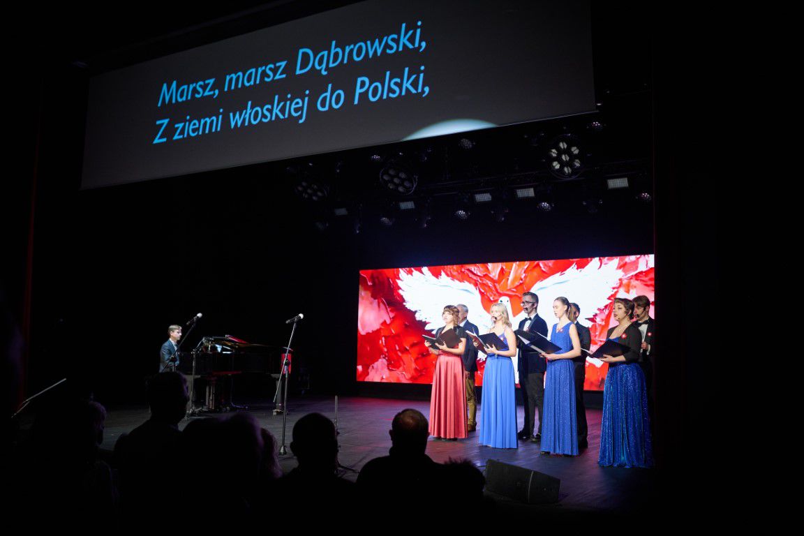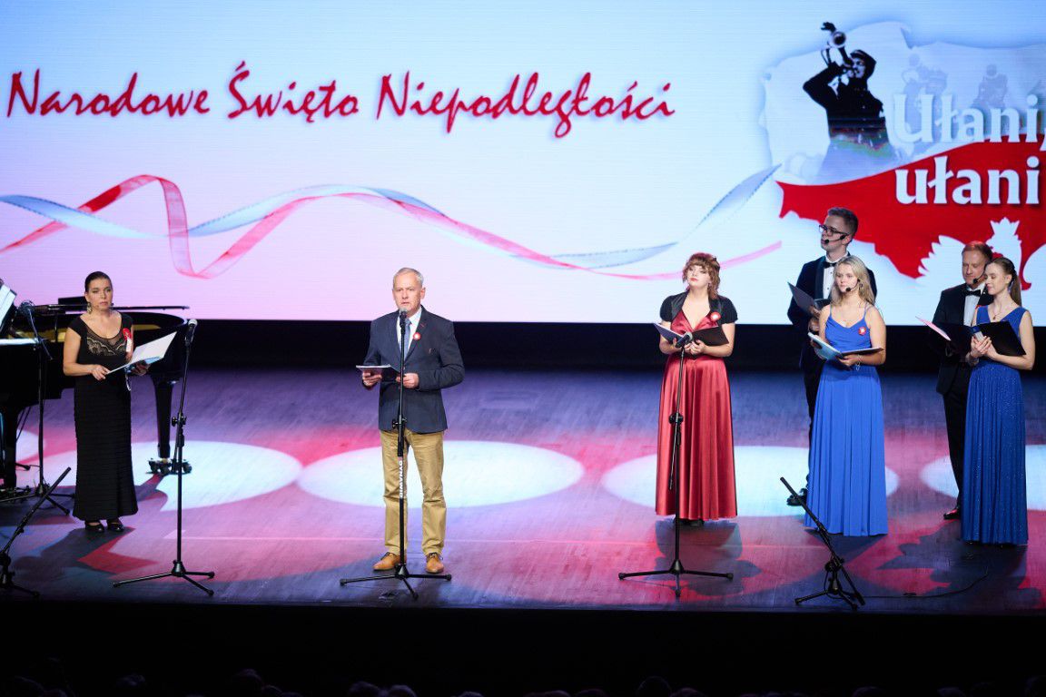 W poniedziałek na sali widowiskowej zabrzmiały dźwięki śpiewnika patriotycznego „Ułani, ułani”, który odbył się już po raz dziesiąty. Tradycyjnie poprowadziła go znakomita śpiewaczka operowa Ewa Filipowicz-Kosińska, prof. Akademii Sztuki w Szczecinie, której towarzyszyli Maciej Skowronek przy fortepianie, a także studenci Wydziału Wokalnego Akademii Sztuki w Szczecinie: Natalia Fałek, Elżbieta Surmacz, Piotr Figielski i Krystian Gliński oraz uczniowie Zespołu Państwowych Szkół Muzycznych im. F. Nowowiejskiego w Szczecinie: Milena Słomczewska, Laura Chmielewski i Antoni Płaczek. W wypełnionej po brzegi sali zebrana publiczność łączyła się we wspólnym śpiewie, w wyjątkowy sposób świętując ten szczególny w historii Polski dzień. Donośne głosy rozbrzmiewały w całym budynku, dodając uroczystego nastroju obchodom święta. Zgromadzeni na widowni goście chętnie zgłaszali się do występów solowych, co przed tak dużą publicznością wymagało nie lada odwagi. Jednak mając wsparcie prowadzącej koncert Ewy Filipowicz-Kosińskiej, wszyscy wypadli świetnie. Po koncercie na gości czekał tort i lampka szampana, by jeszcze przez chwilę można było porozmawiać w gronie rodziny i znajomych czy przyjrzeć się wystawie archiwalnych fotografii, która została przygotowana specjalnie na tę okazję.