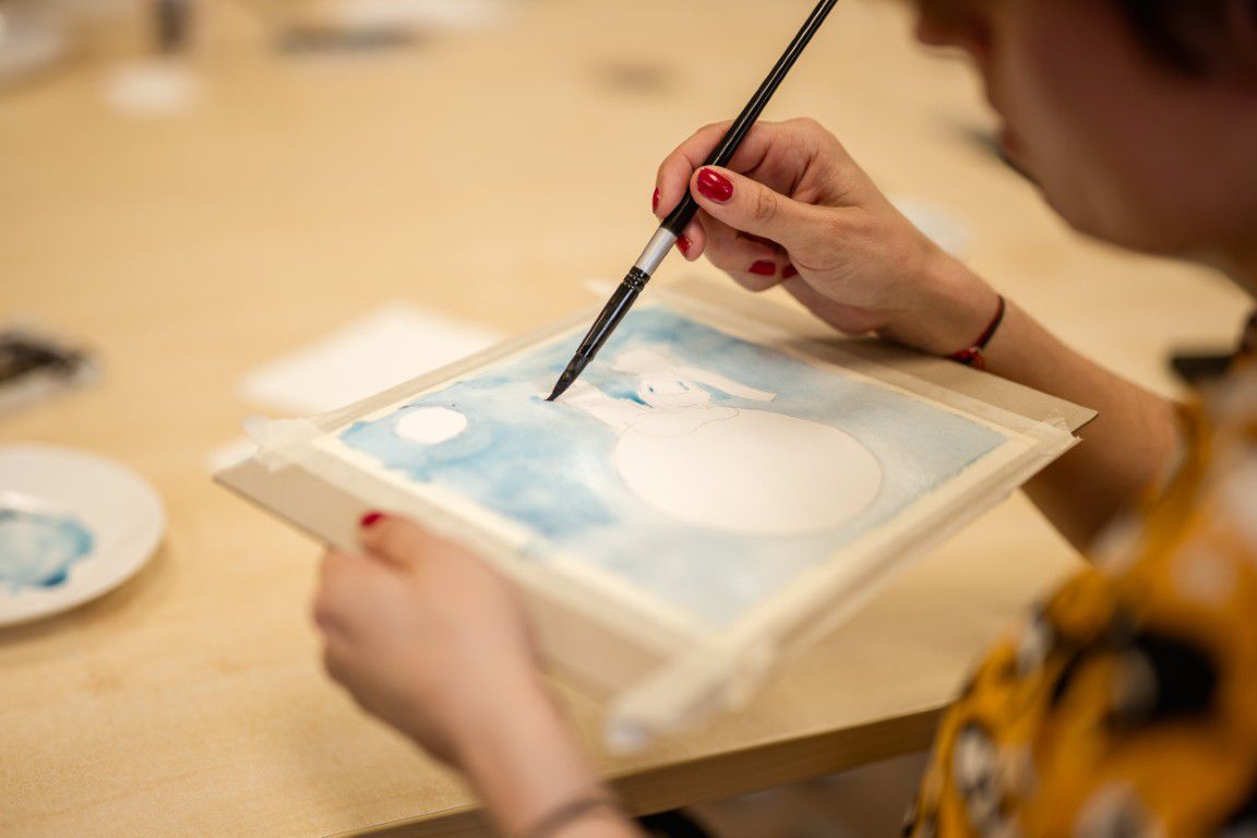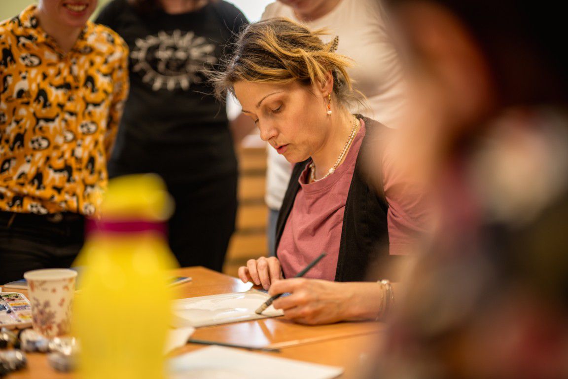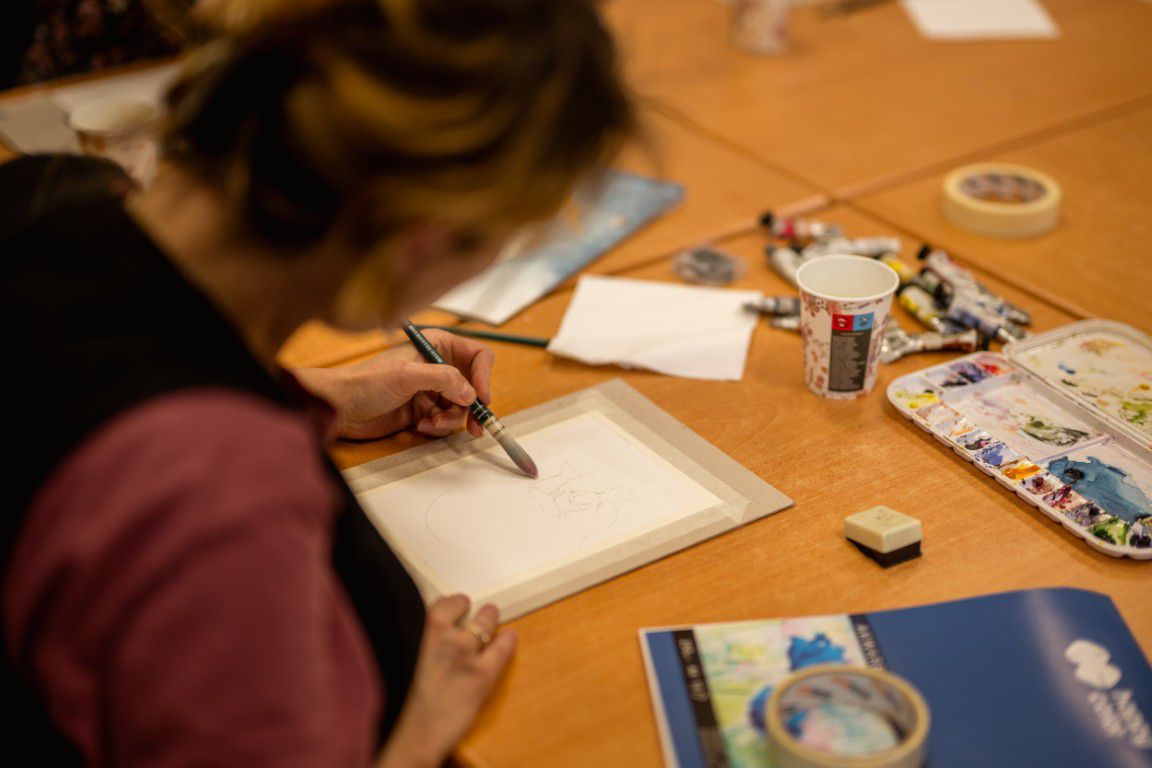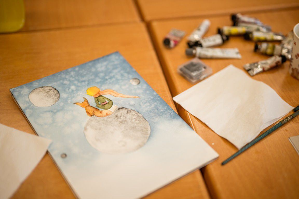 W piątkowe popołudnie, 4 kwietnia, wielbiciele sztuki malarskiej spotkali się w mokowskiej pracowni, by stworzyć oryginalne ilustracje z motywem z „Małego Księcia”. Spod pędzli wyszły znakomite obrazy, malowane subtelnymi, rozmytymi barwami, tworzącymi efekt lekkości i efemeryczności. Według wskazówek instruktorki, uczestniczki spotkania krok po kroku szkicowali, dobierali i nanosili odpowiednie kolory, cieniowali, dopracowywali, by finalnie uzyskać wymarzony rezultat. Doskonalenie zdolności manualnych i umiejętności łączenia barw, nauka właściwych proporcji, ale przede wszystkim radość tworzenia i odzwierciedlanie na kartce papieru artystycznej wizji i autorskiej kreacji, były udziałem wszystkich, którzy wzięli udział w warsztatach z Anną Kwiecień. Wykonane ilustracje z pewnością z dumą będą zdobić wnętrza domów, przypominając uczestniczkom o pasji, którą rozbudziły w nich przygotowane przez nas warsztaty.