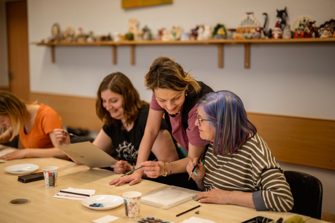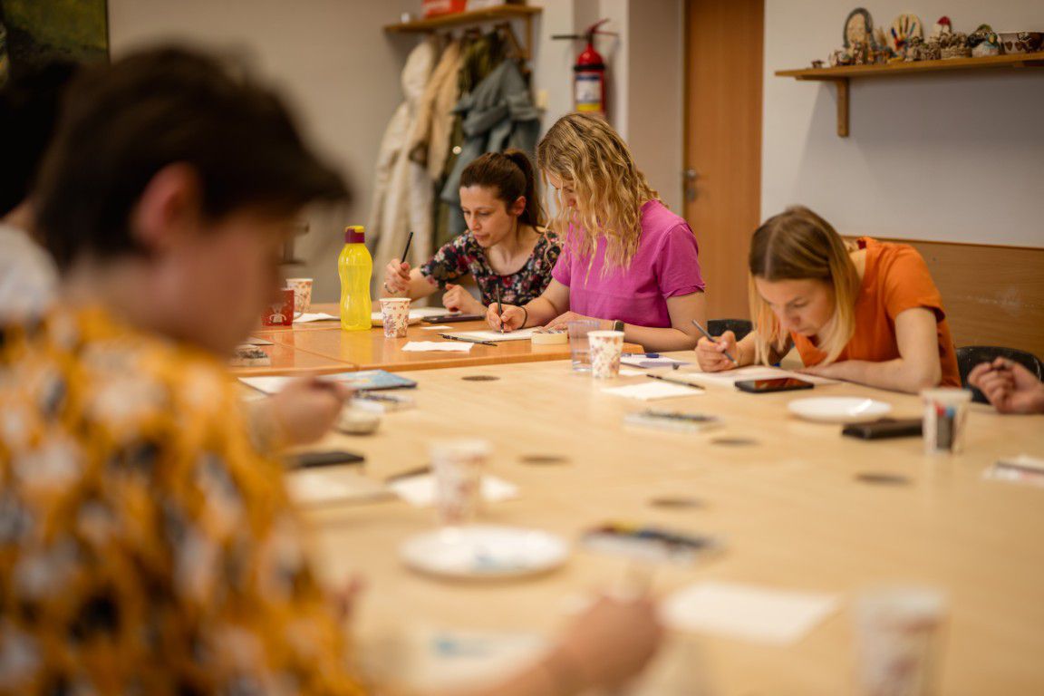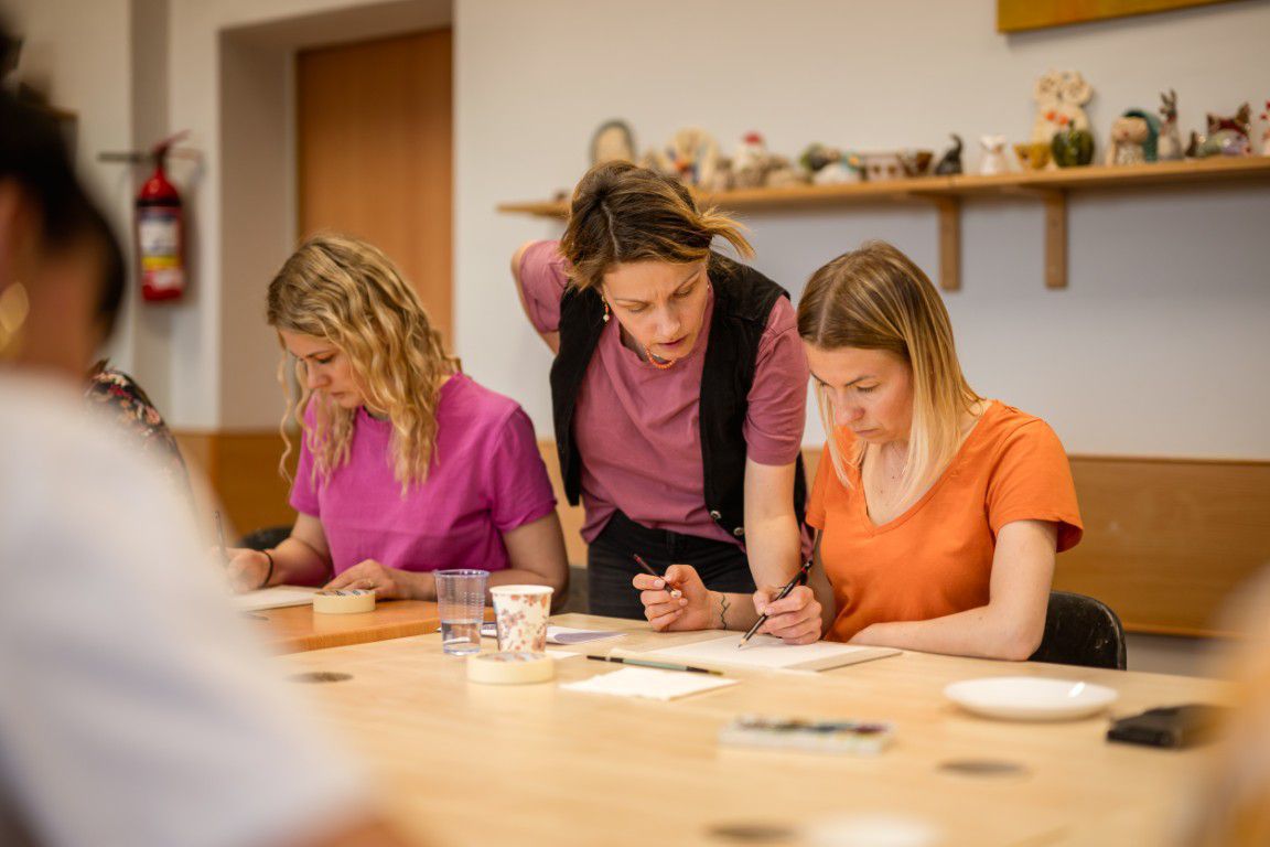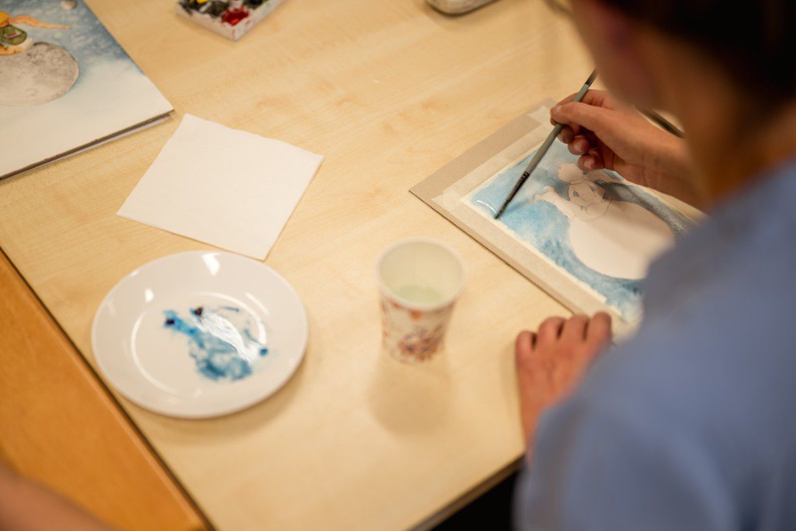 W piątkowe popołudnie, 4 kwietnia, wielbiciele sztuki malarskiej spotkali się w mokowskiej pracowni, by stworzyć oryginalne ilustracje z motywem z „Małego Księcia”. Spod pędzli wyszły znakomite obrazy, malowane subtelnymi, rozmytymi barwami, tworzącymi efekt lekkości i efemeryczności. Według wskazówek instruktorki, uczestniczki spotkania krok po kroku szkicowali, dobierali i nanosili odpowiednie kolory, cieniowali, dopracowywali, by finalnie uzyskać wymarzony rezultat. Doskonalenie zdolności manualnych i umiejętności łączenia barw, nauka właściwych proporcji, ale przede wszystkim radość tworzenia i odzwierciedlanie na kartce papieru artystycznej wizji i autorskiej kreacji, były udziałem wszystkich, którzy wzięli udział w warsztatach z Anną Kwiecień. Wykonane ilustracje z pewnością z dumą będą zdobić wnętrza domów, przypominając uczestniczkom o pasji, którą rozbudziły w nich przygotowane przez nas warsztaty.