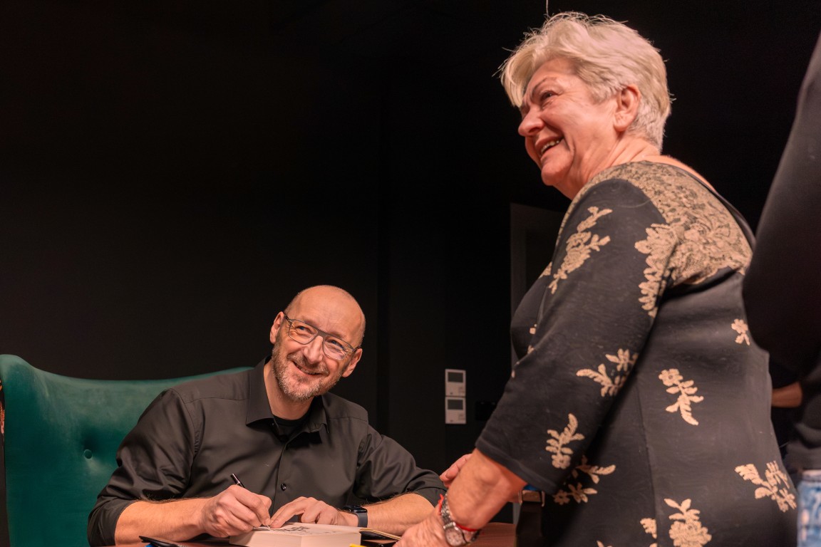 W czasie ekscytującej rozmowy o pracy twórczej autora nie zabrakło również pytań o to, skąd czerpie inspiracje do kolejnych książek, jakie stawia sobie wyzwania i co jest dla niego odskocznią, dzięki której nie popada w schematy. Impulsem do opowiedzenia kilku interesujących anegdot były też pytania zadawane przez publiczność, która chciała jeszcze lepiej poznać uwielbianego przez siebie pisarza. Niemal 2-godzinne spotkanie i inspirująca rozmowa okazały się być tym, czego Policzanie potrzebowali i na co czekali z niecierpliwością.