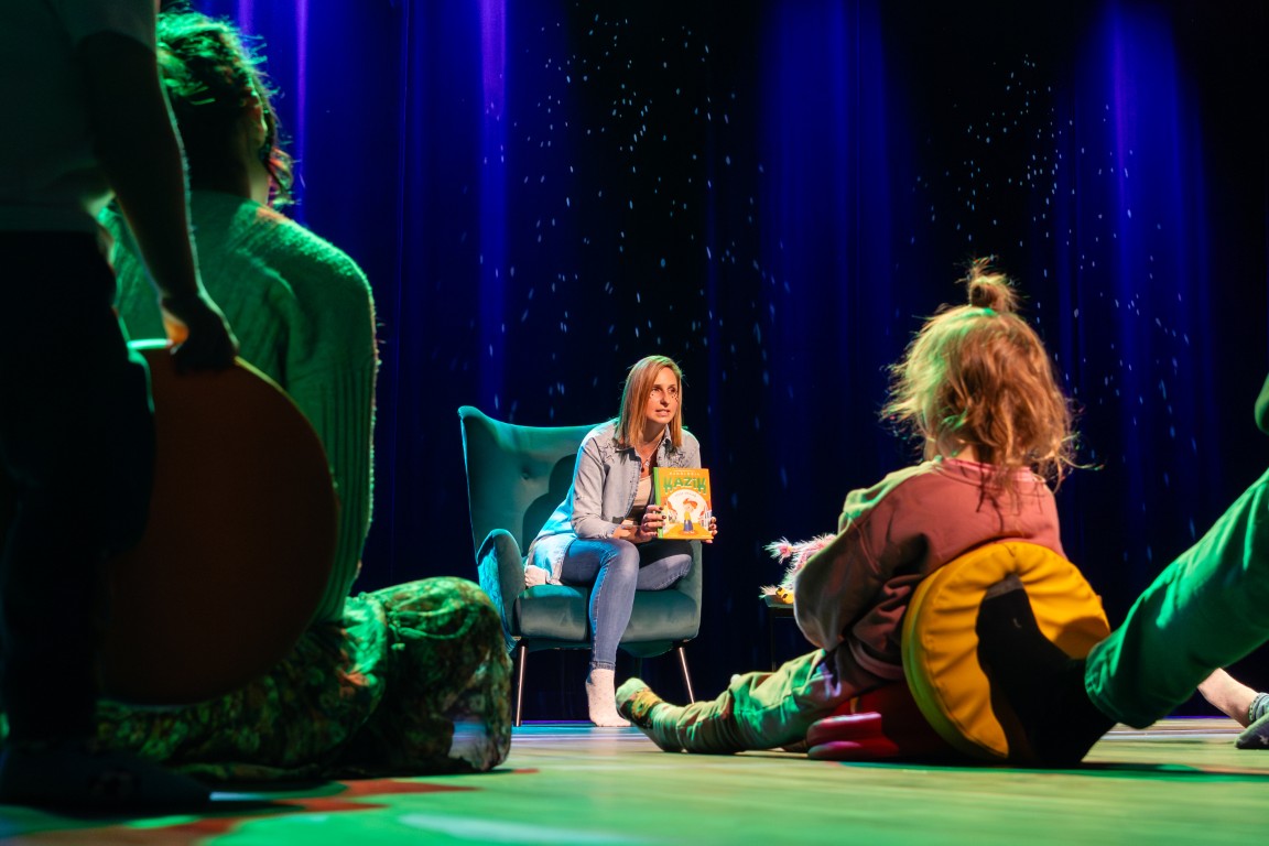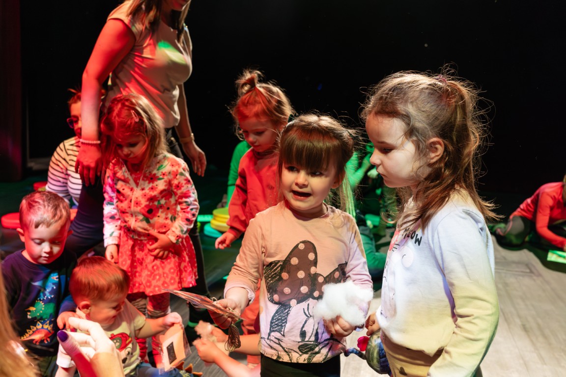 Z kolei dobrych sposobów na radzenie sobie ze smutkiem dostarczyła nam historia o małym Kaziku – przedszkolaku, którego smutek dopada wtedy, gdy wyjście na lody, na które czekał od samego rana, okazuje się niemożliwe, bo jego ulubiona kawiarnia jest zamknięta. Na szczęście z pomocą przychodzi mama, która dzieli się z synkiem swoim sposobem na uporanie się z emocjami. W opowiadaniu taką skuteczną metodą okazuje się piosenka, którą i my wspólnie z dziećmi i rodzicami wyśpiewaliśmy i wytańczyliśmy, żeby odgonić nasze smutki. Radosna melodia pokazała dzieciom, że smutek można przyjąć, nazwać, a potem rozproszyć go poprzez ruch, taniec i śpiew.