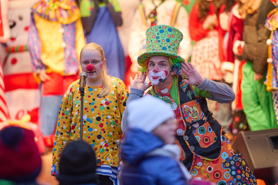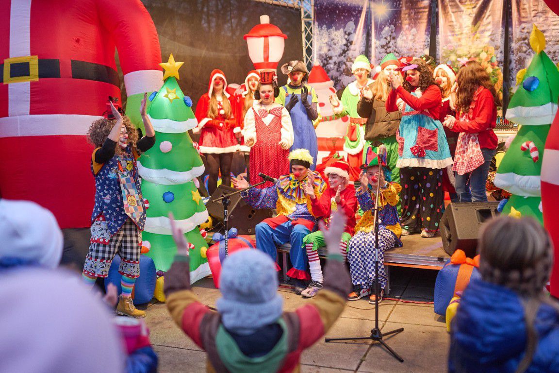 Pierwszego dnia jarmarku najmłodsi widzowie z radością wzięli udział w baśniowym spektaklu klaunów Rupherta i Rico, którzy w interaktywny i pełen humoru sposób opowiadali o magii Bożego Narodzenia. Wesołe piosenki, kolorowe rekwizyty i wspólna zabawa sprawiły, że dzieci poczuły wyjątkowy klimat zbliżających się świąt. Na scenie nie zabrakło również występów solistów i grup wokalnych działających przy Miejskim Ośrodku Kultury, którzy wprowadzili publiczność w gwiazdkowy nastrój, wykonując kolędy, pastorałki oraz znane świąteczne przeboje.