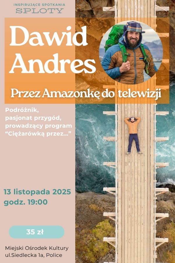 W ramach cyklu SPLOTY w Policach pojawi się wyjątkowy gość, Dawid Andres – podróżnik, odkrywca, niezwykle inspirująca postać znana ze świata telewizji.