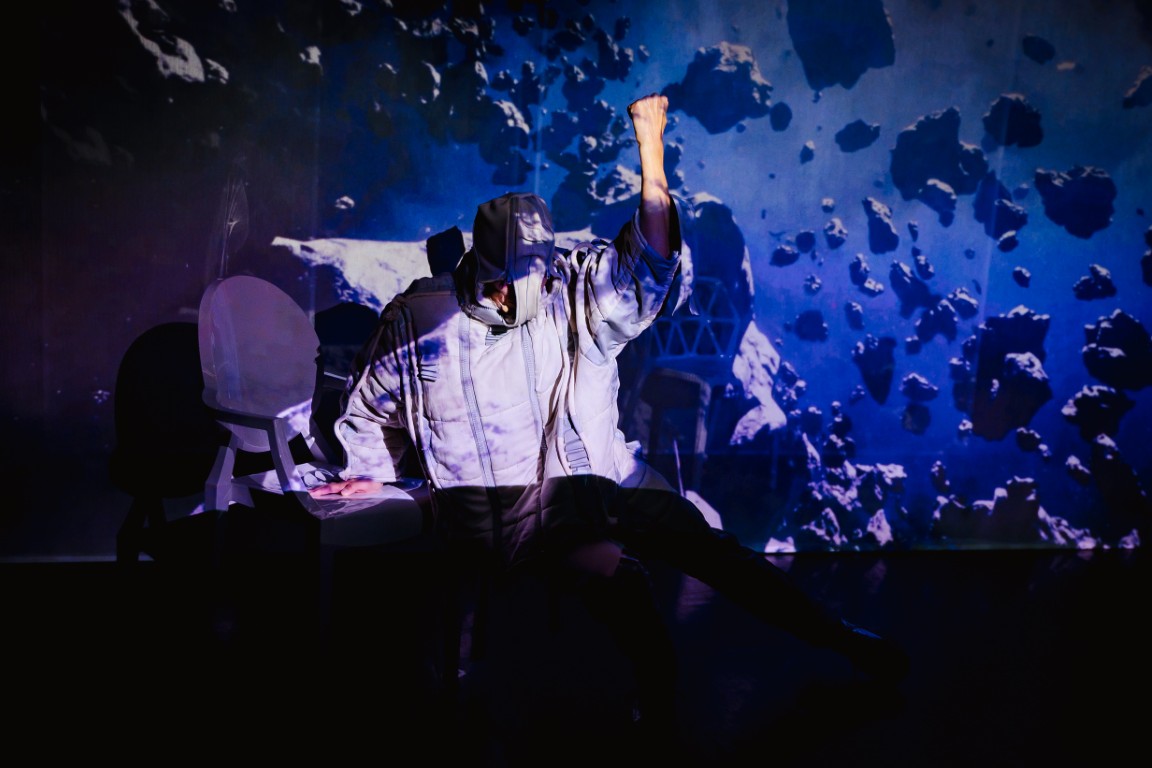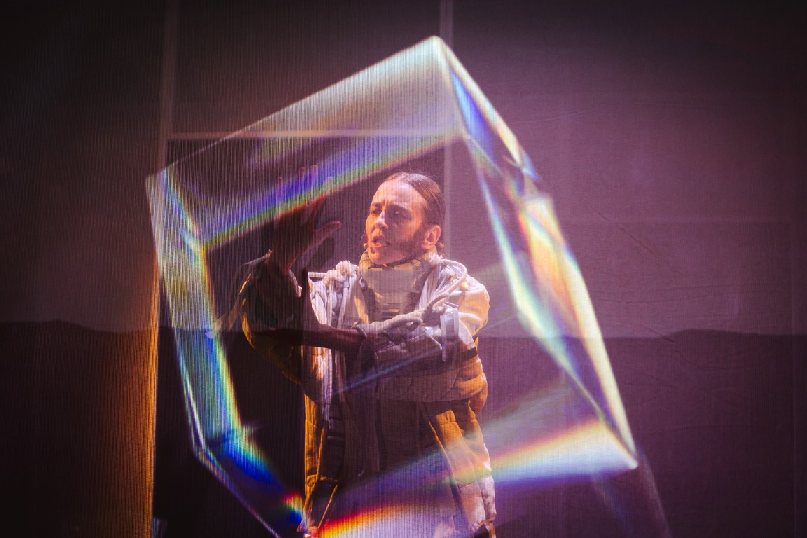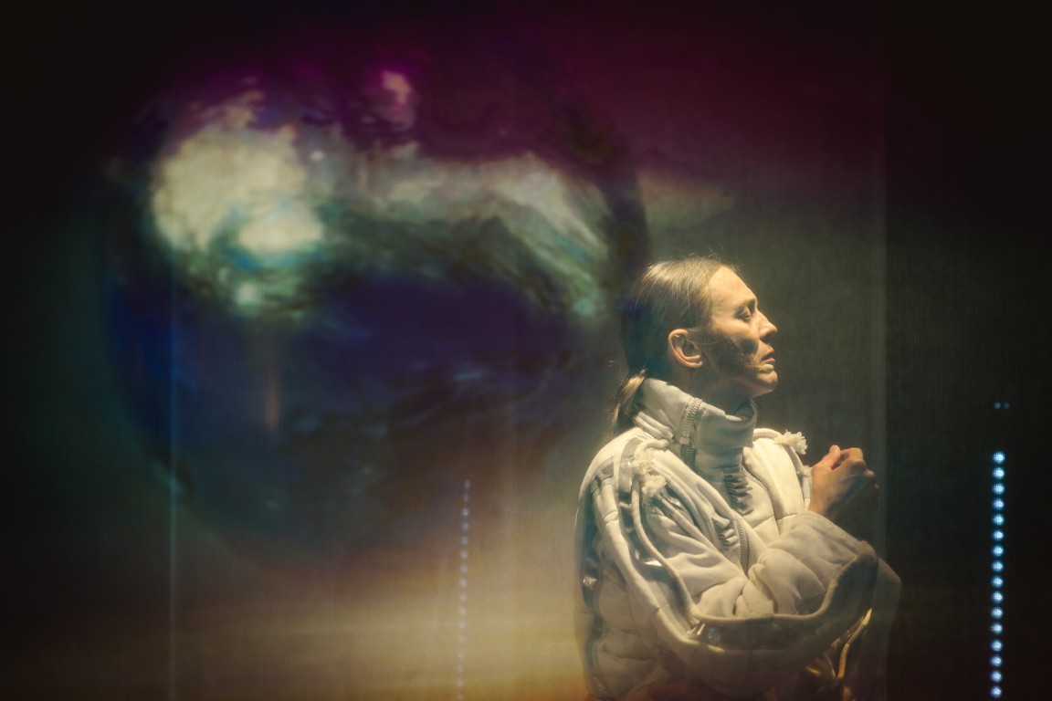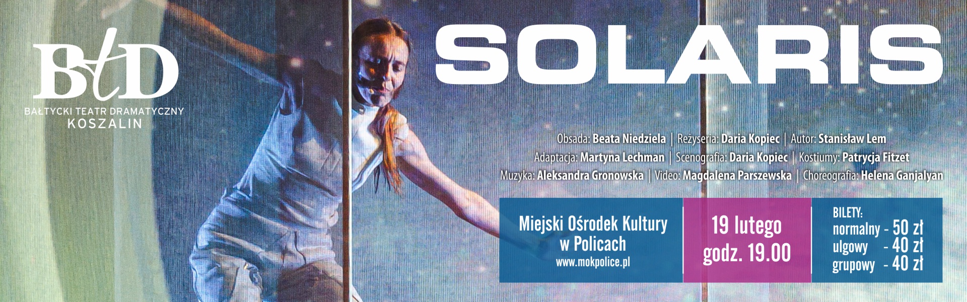 Solarystyczna opowieść Stanisława Lema została przełożona na język monodramu. Kelvin, główny bohater, ucieka przed życiem i relacjami w pracę. Jego największym celem, któremu poświęca wiele lat życia, jest dotarcie na planetę Solaris, której tajemnic dotąd nie odkryli badacze. Izolacja i poczucie wyobcowania, jakie towarzyszą jego pobytowi na stacji kosmicznej, stają się okazją do uzewnętrznienia się wewnętrznych rozterek głównego bohatera. Jego dotychczasowe postępowanie było próbą wyparcia samobójczej śmierci ukochanej. Dopiero nietypowe zdarzenia, jakie mają miejsce na stacji na Solaris, stwarzają mu nieoczekiwanie warunki do spotkania z samym sobą i uwolnienia od traumatycznego zdarzenia. Forma monodramu idealnie pokazuje, jak ważne dla nas osoby i zdarzenia są dosłowną częścią nas samych. Spektakl będzie metafizyczną podróżą bohatera w głąb siebie, szukając odpowiedzi nie tylko w materialnym świecie faktów i zdarzeń z życia bohatera, ale przede wszystkim wchodząc w głąb struktury naszej transcendentalnej natury.