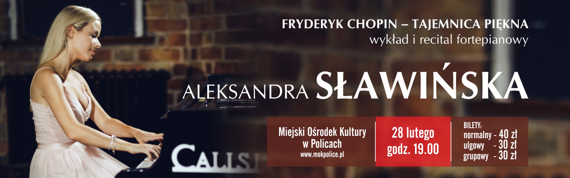 Na te i inne pytania Aleksandra Sławińska spróbuje odpowiedzieć podczas spotkania łączącego wykład z zakresu psychologii piękna i pedagogiki sztuki z dopełnieniem muzycznym w postaci utworów Chopina zaprezentowanych przez nią na żywo. Wyjątkowy występ zrodzi możliwość wspólnej refleksji nad niezwykłą tajemnicą – tajemnicą piękna muzyki Fryderyka Chopina, którego dzieła Robert Schumann opisywał jako „armaty ukryte w kwiatach”.
